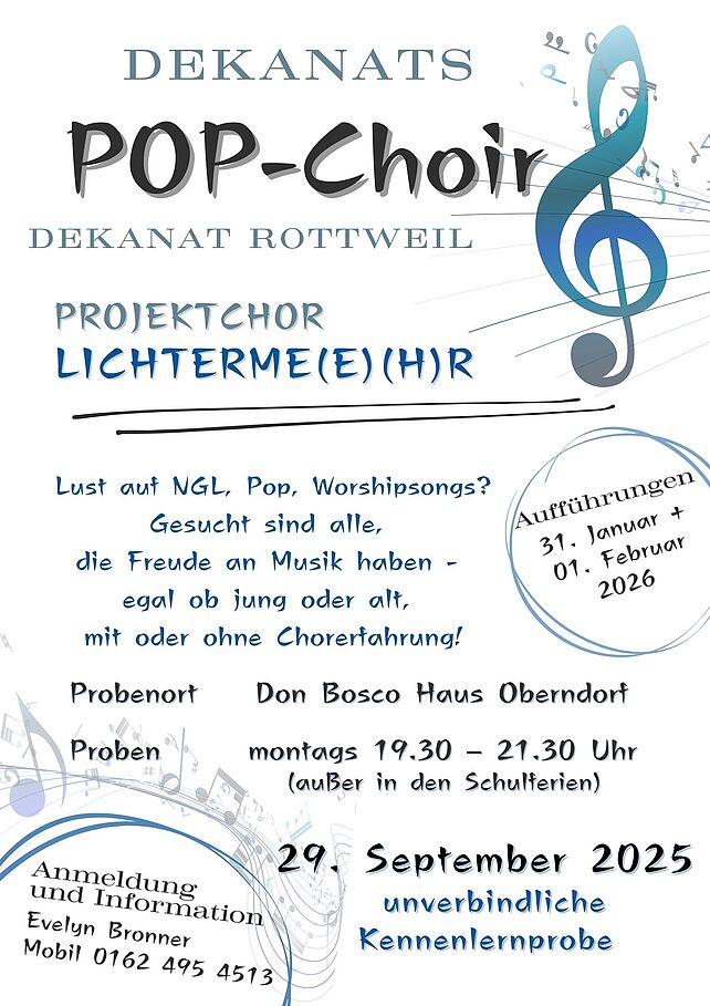 Der Dekanats POP-CHOIR für das Dekanat Rottweil wird neu gegründet.