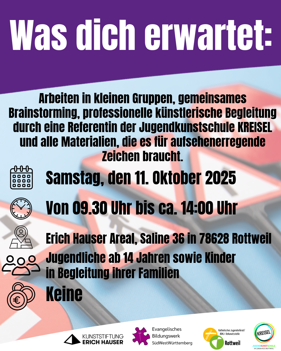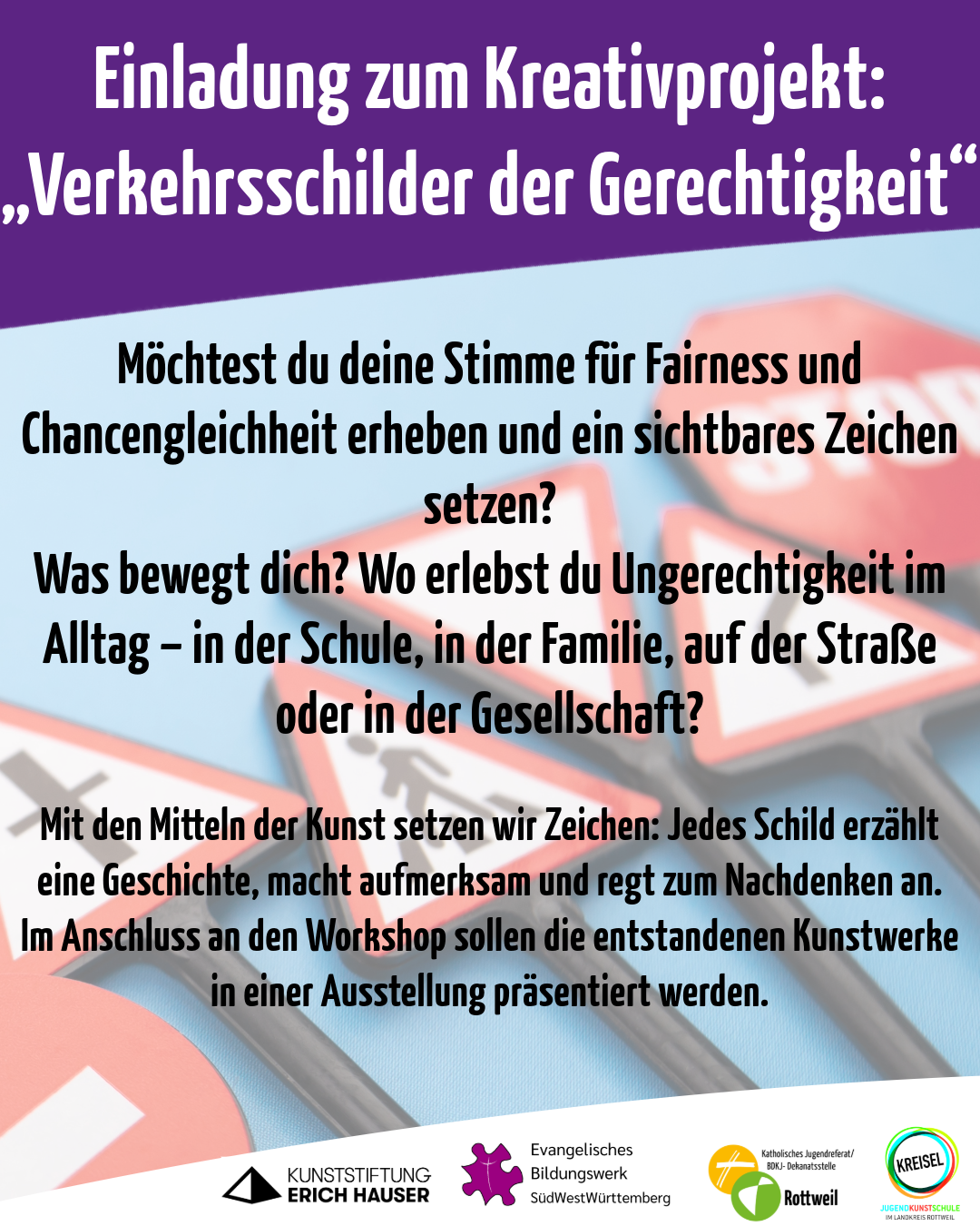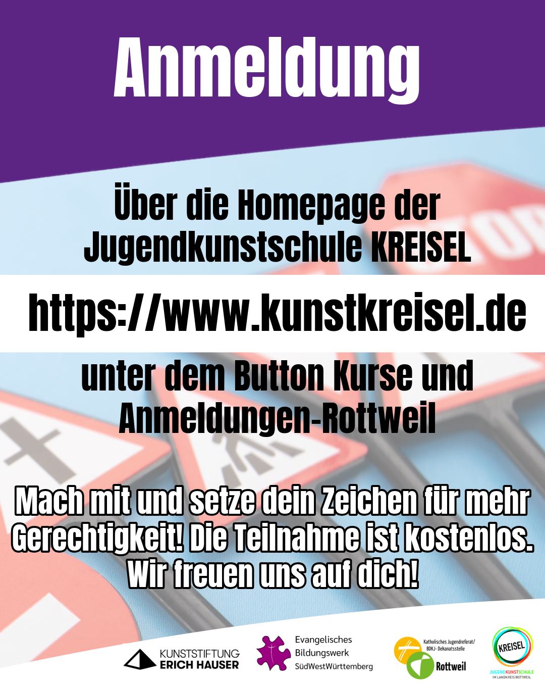 Mach mit und setze dein Zeichen für mehr Gerechtigkeit! Die Teilnahme ist kostenlos. Die Jugendkunstschule KREISEL und wir freuen uns auf dich!